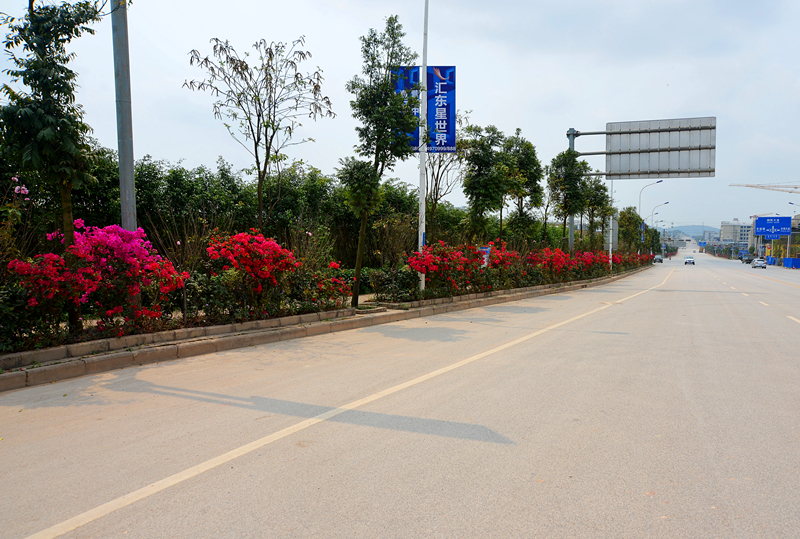本項目位于金陽路,于2014年12月開工,2015年1月完工,綠化面積約2700㎡,種植主要品種有:人面子、黃金香柳、夾竹桃、、硬枝黃蟬、紅繼木、三角梅等