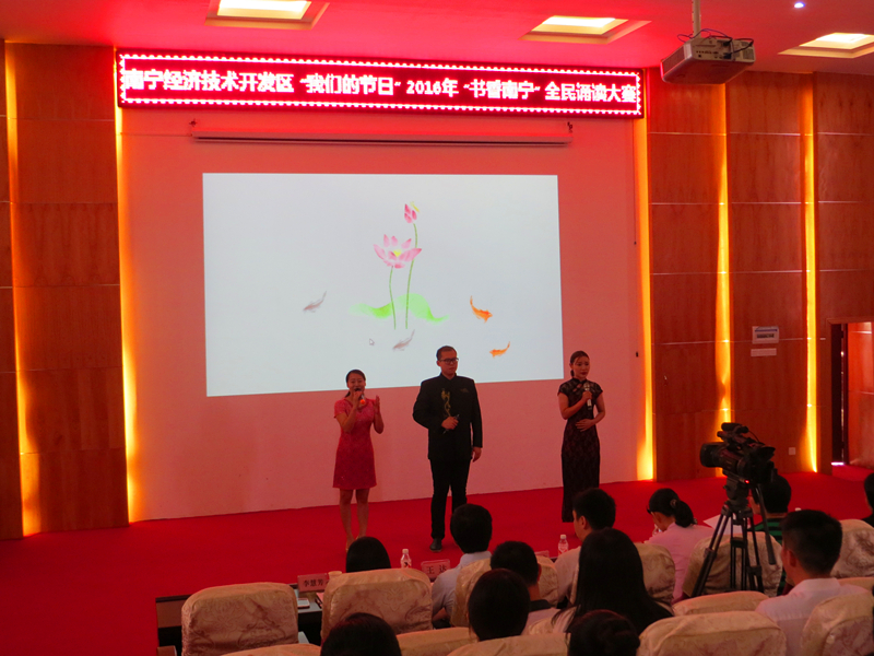 據(jù)了解,為大力培育和踐行社會(huì)主義核心價(jià)觀,傳承中華傳統(tǒng)節(jié)日和中華傳統(tǒng)國(guó)學(xué)文化,倡導(dǎo)全民閱讀,南寧市已連續(xù)多年舉辦“書香綠城”系列讀書活動(dòng)和經(jīng)典誦讀活動(dòng)。接到經(jīng)開區(qū)開展比賽的通知后,集團(tuán)領(lǐng)導(dǎo)高度重視,把該活動(dòng)作為推動(dòng)企業(yè)文化建設(shè)的一個(gè)有利契機(jī),積極組織人員參賽。集團(tuán)領(lǐng)導(dǎo)親自帶隊(duì),精心挑選了參賽作品,利用節(jié)假日的休息時(shí)間,加班加點(diǎn)進(jìn)行排演,逐字逐句地調(diào)整校正發(fā)音。為豐富表演形式,還讓集團(tuán)擅長(zhǎng)制作PPT的職工結(jié)合誦讀的內(nèi)容制作了動(dòng)態(tài)PPT,使表演更精彩。