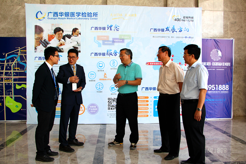當天下午,周紅波一行首先來到位于綠港·國際中心B4棟的廣西華銀醫(yī)學檢測所,聽取了廣西華銀醫(yī)學檢測所相關負責人的企業(yè)生產(chǎn)經(jīng)營情況匯報,走訪該所廣西醫(yī)學檢驗中心、廣西轉化醫(yī)學研究中心、東盟國際遠程病理診斷中心,實地了解實驗室建設運營情況。廣西華銀醫(yī)學檢測所于2016年1月進駐綠港·國際中心,以4500平米實驗室作為廣西總部基地,業(yè)務范圍輻射廣西、云南及東盟各國,總投資規(guī)模近1億元,引入全國第一條完整的微生物全自動流水線,建設了國內(nèi)第一家東盟遠程病理診斷中心以及全國最大規(guī)模的精準醫(yī)學實驗中心。