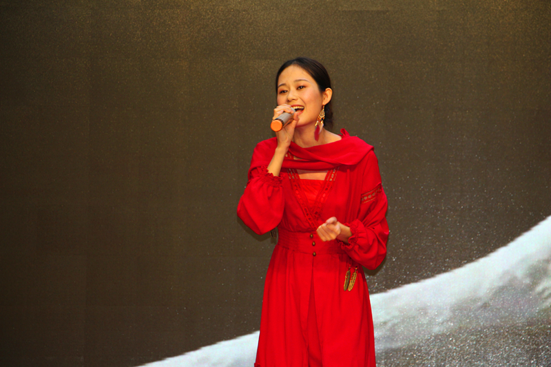 集團領導班子成員、總經(jīng)理助理上臺演唱《心會跟愛一起走》