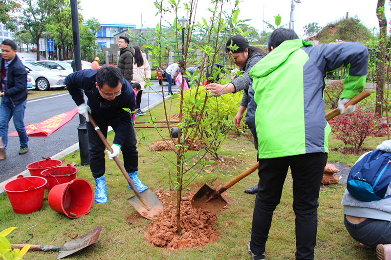 綠港集團(tuán)董事長龔國強(qiáng)帶領(lǐng)職工們開展植樹護(hù)綠行動(dòng)