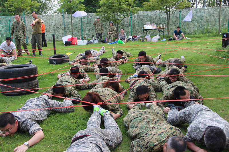 在下午的拓展活動環(huán)節(jié),正值烈日當空,天氣炎熱,但是學(xué)員們?nèi)匀荒軌驁猿衷賵猿郑朔邷?、疲憊、傷痛,一路闖關(guān)過陣,攜手共進,圓滿完成了團隊作戰(zhàn)、過電網(wǎng)、動力圈三個拓展項目培訓(xùn),充分展現(xiàn)了綠港人堅韌不拔、團結(jié)協(xié)作、不言放棄的良好精神品質(zhì)。