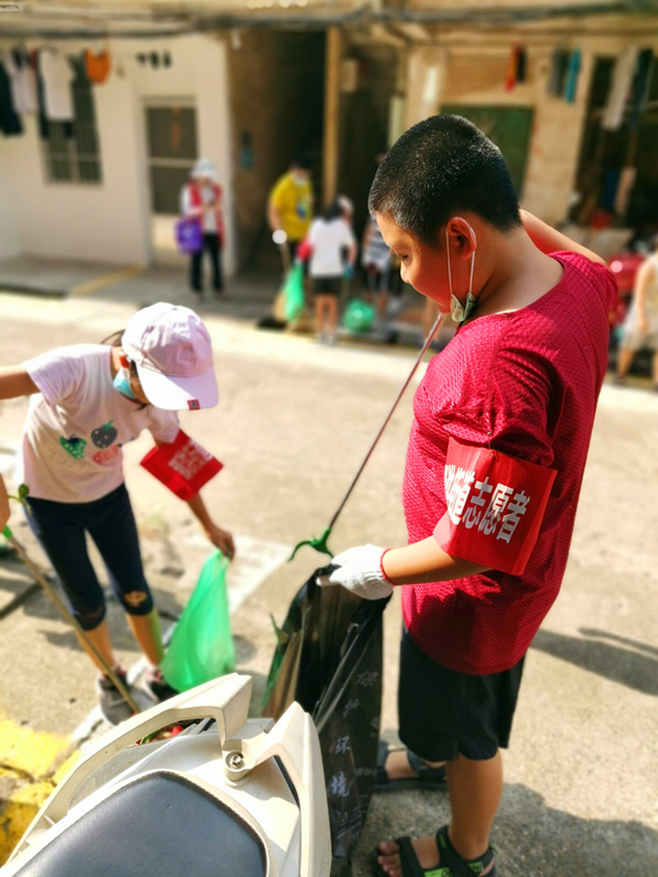 小小志愿者不懼烈日撿垃圾