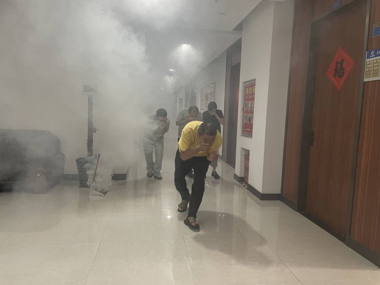 隨后,全體人員轉移至模擬火災事故現(xiàn)場,進行現(xiàn)場實操演練。先后體驗了建筑物煙霧逃生、滅火器使用等綜合演練項目。全體員工的安全意識和應急處置能力得到了進一步提升。